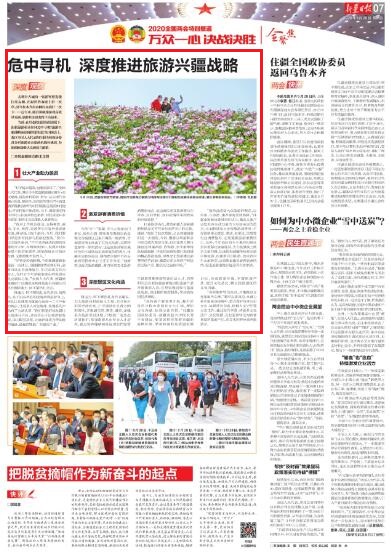 “政府工作报告提出,支持餐饮、商场、文化、旅游、家政等生活服务业恢复发展,推动线上线下融合。今后,我们要引导更多村民参与旅游业发展。”努尔·买买提代表说,“今年是决战决胜脱贫攻坚收官之年,在精准扶贫中,发展乡村旅游是个很好的抓手,既能促进乡村经济发展,又能增加村民收入。”