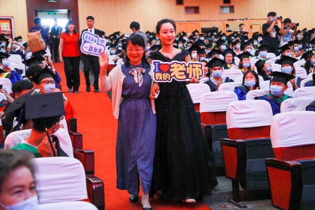 典礼开始前,师生们共走红毯。随后,各学院师生带来《我们都是追梦人》《同学》《我怀念的》《青春纪念册》《再见》等歌曲。当播放毕业微电影、毕业MV时,师生们静静观看,共同回忆在校园经历的点点滴滴。
