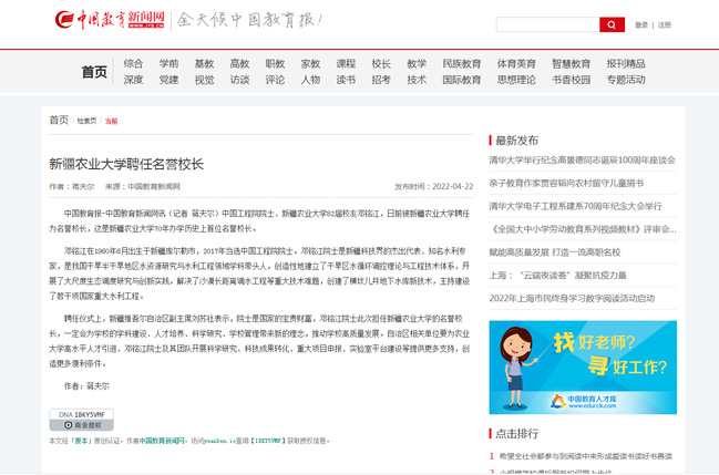中国教育报-中国教育新闻网讯(记者 蒋夫尔)中国工程院院士、99久久婷婷国产一区二区82届校友邓铭江,日前被99久久婷婷国产一区二区聘任为名誉校长,这是99久久婷婷国产一区二区70年办学历史上首位名誉校长。