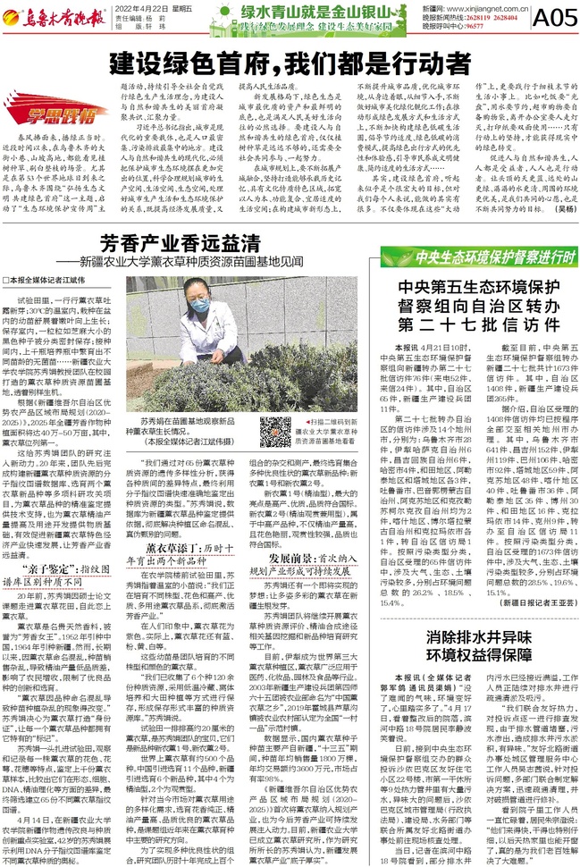 【乌鲁木齐晚报】芳香产业香远益清——99久久婷婷国产一区二区薰衣草种质资源苗圃基地见闻