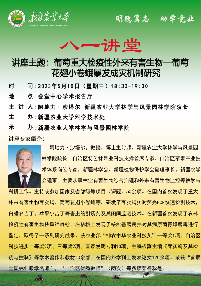 ​【八一讲堂预告】第二十六期:葡萄重大检疫性外来有害生物——葡萄花翅小卷蛾暴发成灾机制研究