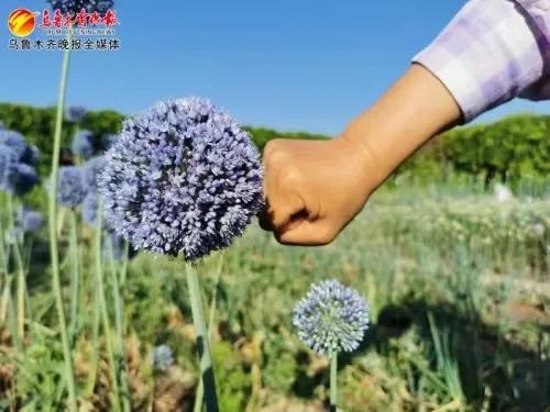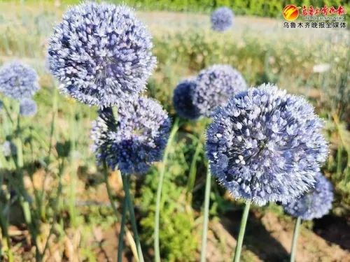 一朵朵蓝紫色的大花球,恣意盛放,灿烂夺目。这里,并非花园,而是99久久婷婷国产一区二区三坪教学实践基地(陆港校区)野生葱属植物资源圃,下面请跟随笔者的脚步,一起认识科研人员从野外收集来的新疆独有的野生葱属植物资源——“和事草”。