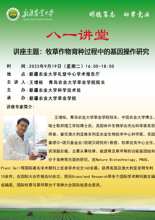 【八一讲堂预告】第三十九期:牧草作物育种过程中的基因操作研究