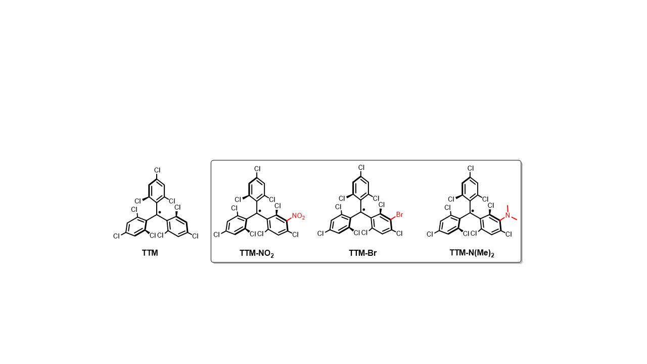 图1 自由基 TTM、TTM-NO2、TTM-Br和TTM-N (Me)2的分子结构