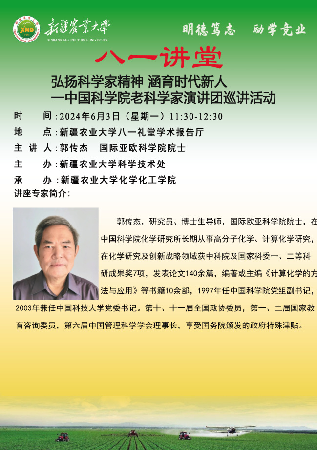 【八一讲堂预告】五十九期:弘扬科学家精神 涵育时代新人 一中国科学院老科学家演讲团巡讲活动