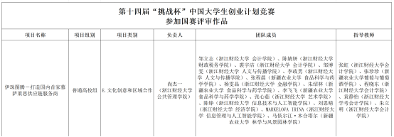 根据《关于组织开展第十四届“挑战杯”中国大学生创业计划竞赛的通知》安排,我校食品科学与药学学院教师张珍珍和学生朱绍林等5人与浙江财经大学“伊珠图腾-打造国内首家慕萨莱思供应链服务商”合作项目进入国赛评审阶段,现对该项目参赛信息予以公示。
