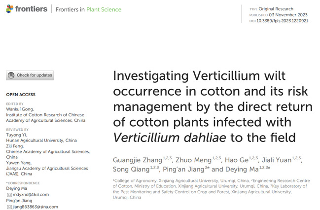 Keywords: stalks returning to field, cotton Verticillium wilt, growth and development, biotransformation, green prevention and control